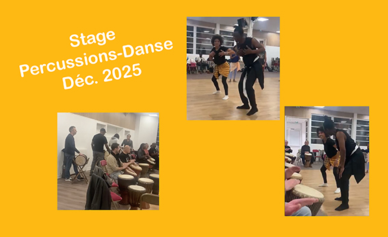 Le 13 décembre 2025, l’association Absolu Mandingue et le danseur malien Vieux Diarra ont organisé un stage de percussions-danse qui a été l’occasion pour les élèves de l’association d’accompagner aux djembe et doundoun les danseurs et danseuses formés par Vieux Diarra.